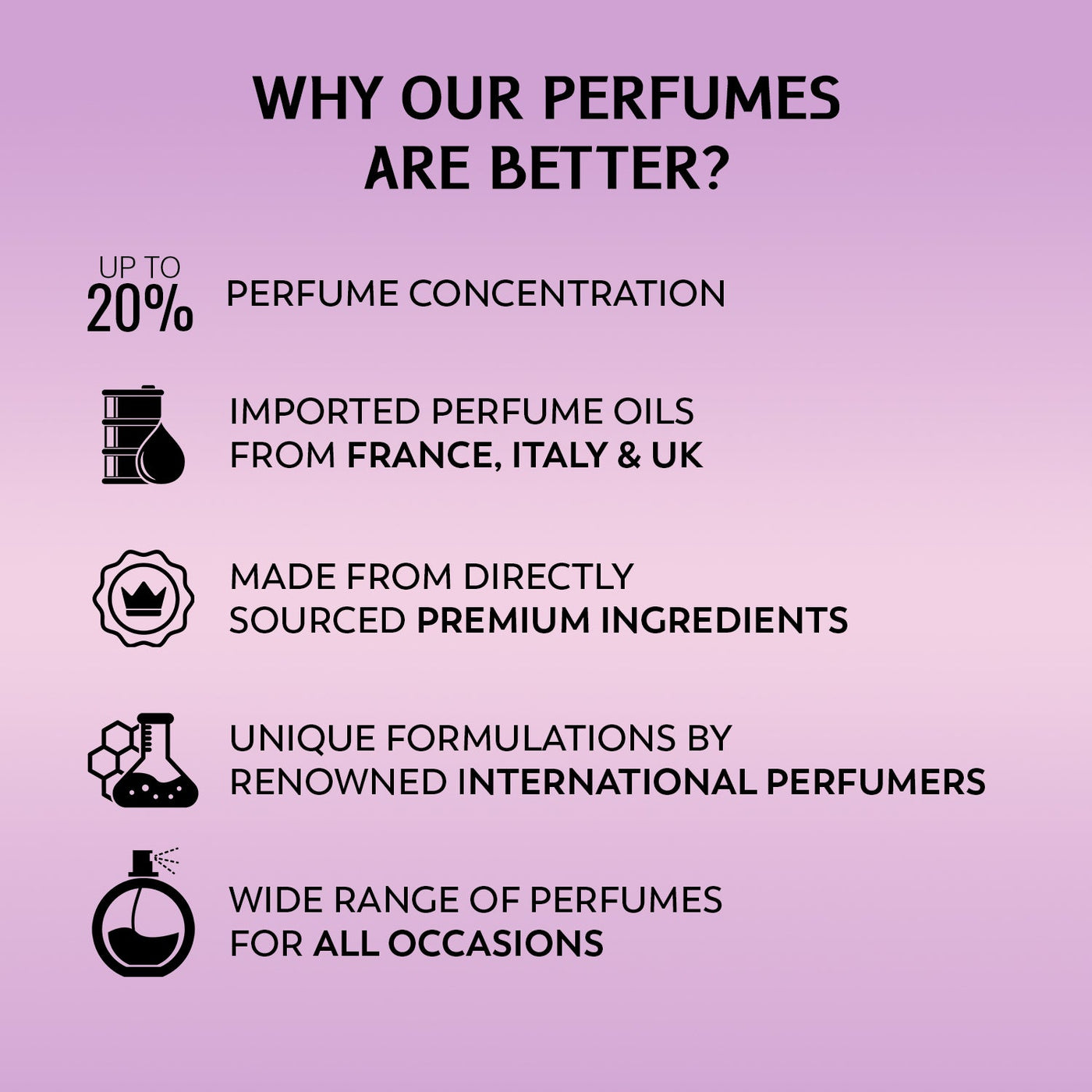 We use only imported, high-quality ingredients like Alcohol Denat., Parfum, Aqua, Linalool, and Limonene to ensure every Coral perfume delivers a premium and consistent fragrance experience.