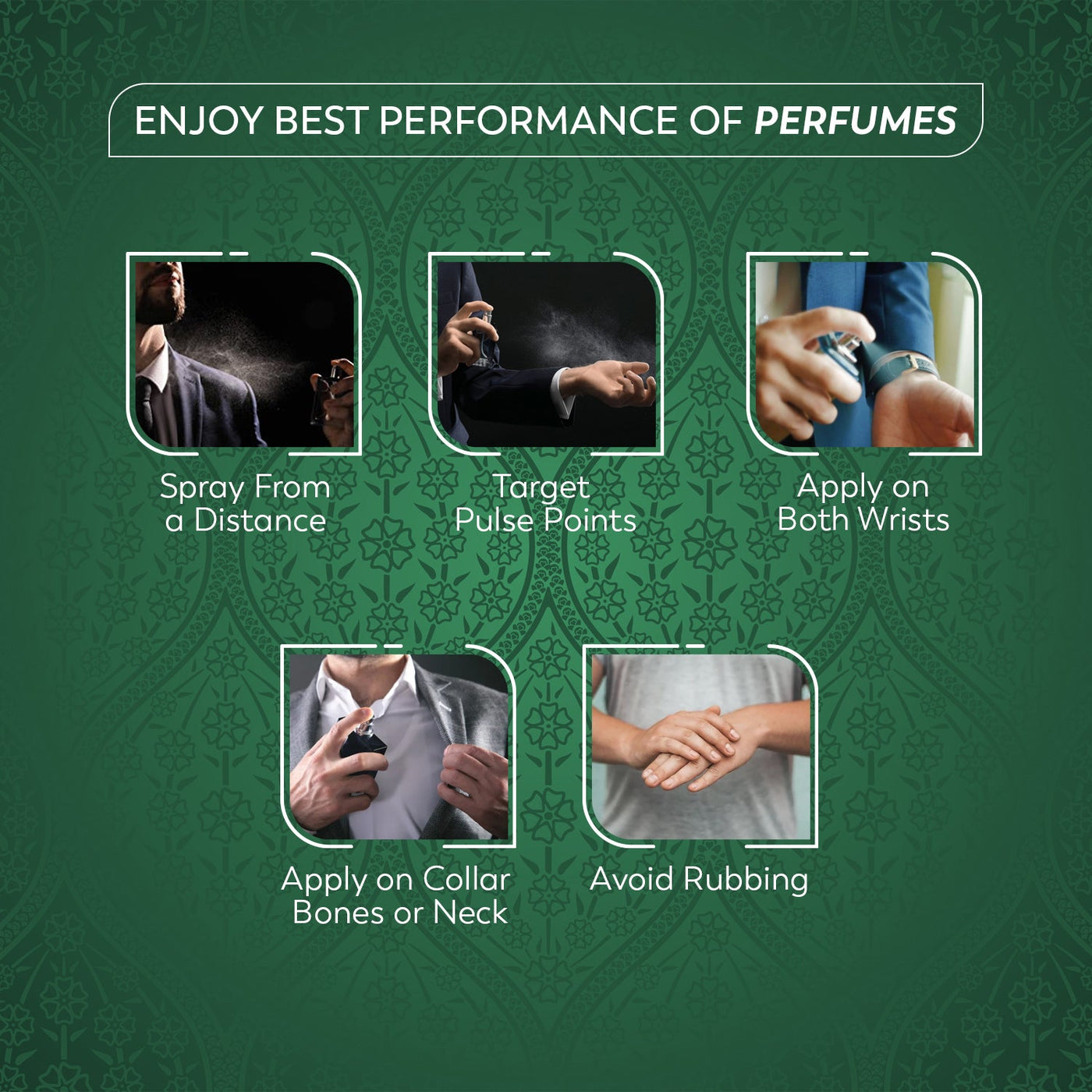 For a longer-lasting scent, apply Oud Elixir to pulse points such as the wrists, neck, and behind the ears. For an even more enhanced experience, spray lightly on clothing or hair from a distance. Avoid rubbing the fragrance after application to preserve its full aroma.